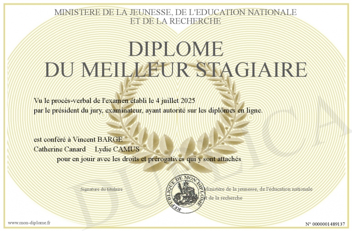 Envoyez par email votre Diplôme du Meilleur Stagiaire personalisé