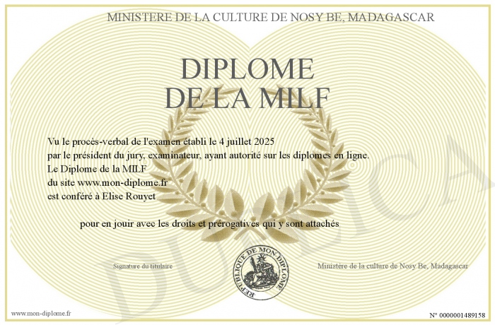 Envoyez par email votre Diplôme de la MILF personalisé