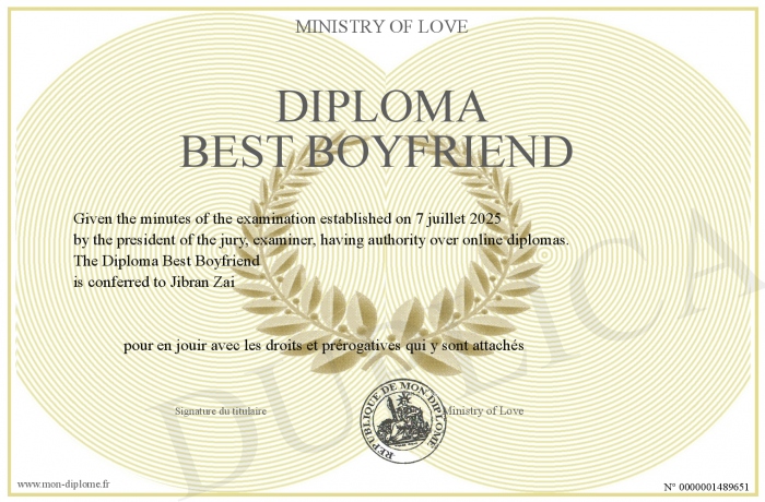 Envoyez par email votre Diploma Best Boyfriend personalisé