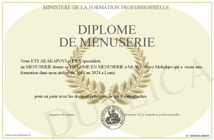 Envoyez par email votre Diplôme de MENUSERIE personalisé