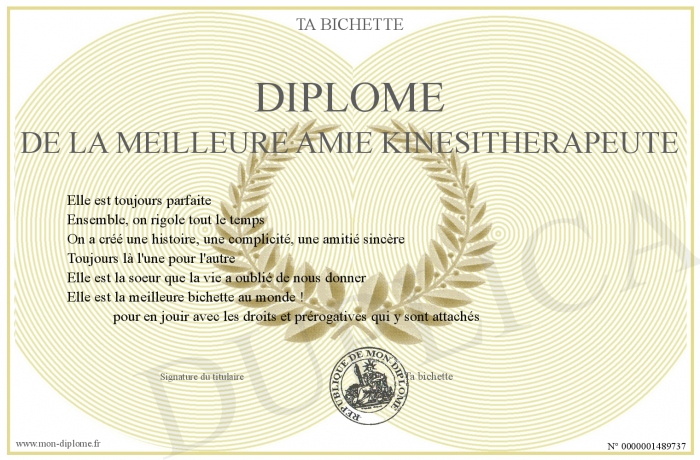 Envoyez par email votre Diplôme de la meilleure amie Kinésithérapeute personalisé