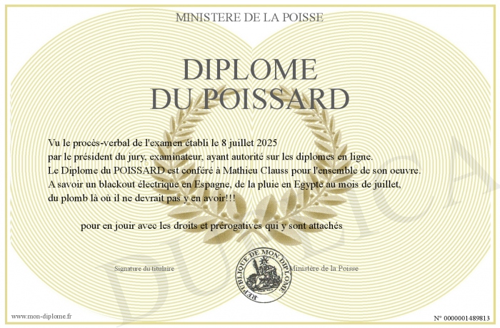 Envoyez par email votre Diplôme du POISSARD personalisé