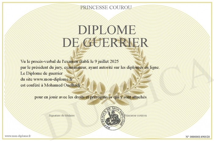 Envoyez par email votre Diplôme de guerrier personalisé