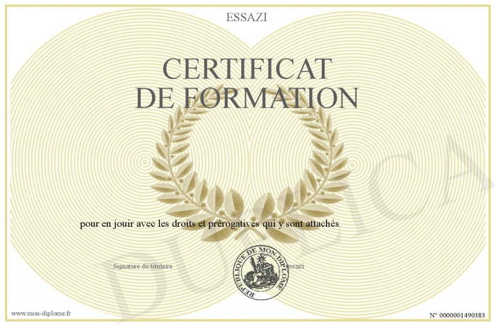 Envoyez par email votre CERTIFICAT DE FORMATION personalisé