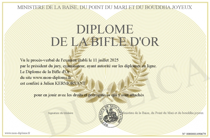 Envoyez par email votre Diplôme de la Bifle d'Or personalisé