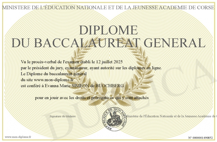 Envoyez par email votre Diplôme du baccalaureat général personalisé