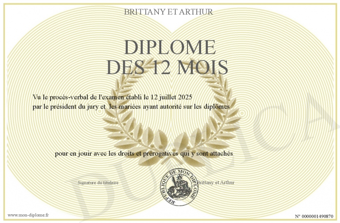 Envoyez par email votre Diplôme des 12 mois personalisé