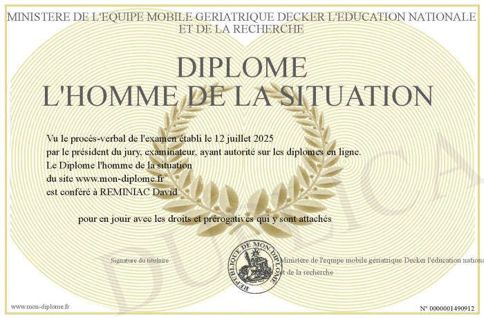 Envoyez par email votre Diplôme l'homme de la situation personalisé
