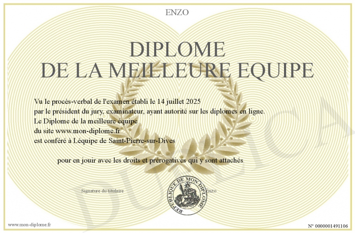 Envoyez par email votre Diplôme de la meilleure équipe personalisé