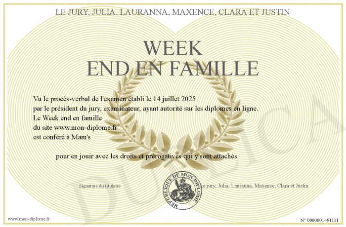 Envoyez par email votre Week end en famille personalisé