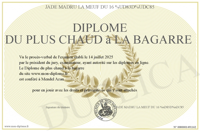 Envoyez par email votre Diplôme du plus chaud à la bagarre personalisé