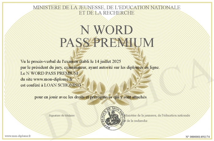 Envoyez par email votre N WORD PASS PREMIUM personalisé
