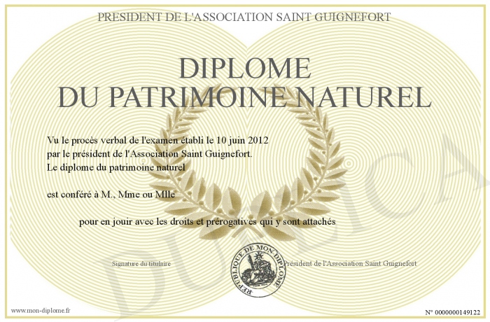 Envoyez par email votre Diplôme du patrimoine naturel personalisé
