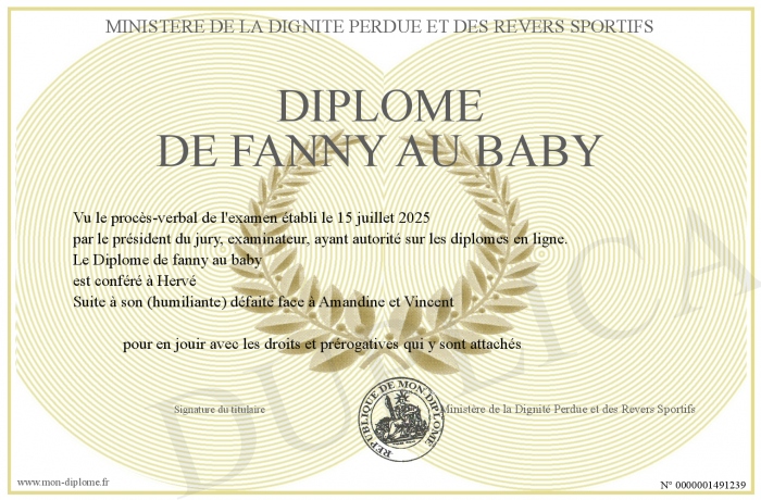 Envoyez par email votre Diplôme de fanny au baby personalisé