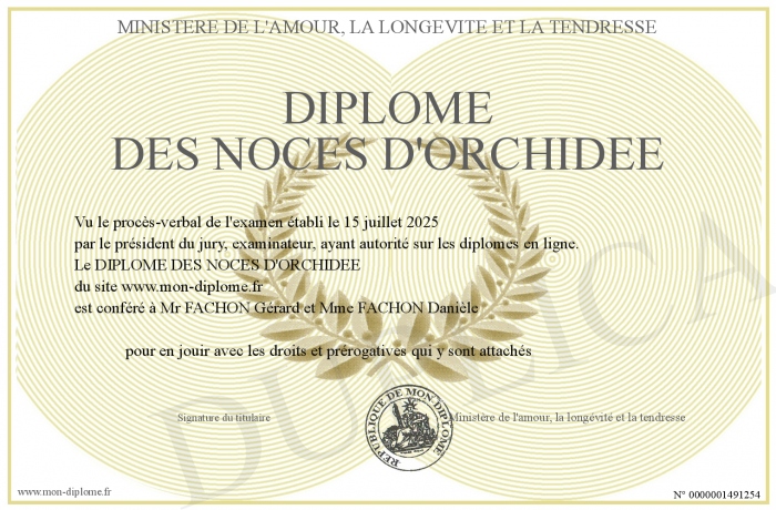 Envoyez par email votre DIPLOME DES NOCES D'ORCHIDEE personalisé