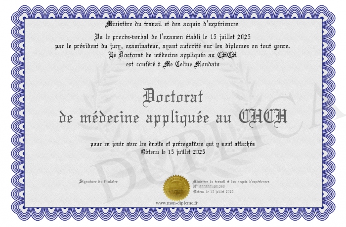Envoyez par email votre Doctorat de médecine appliquée au CHCH personalisé