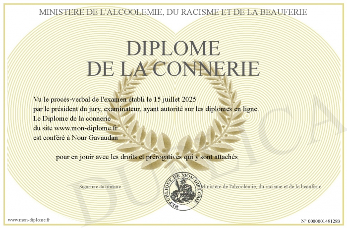 envoyé par le Ministère de l'alcoolémie, du racisme et de la beauferie !