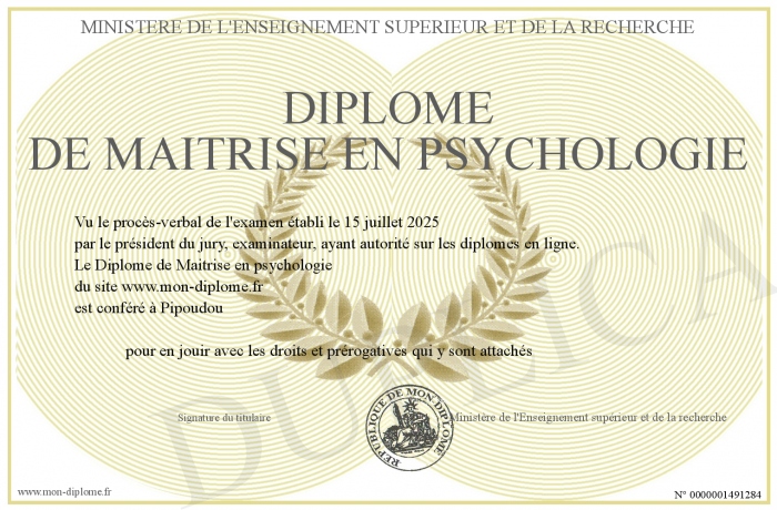 Envoyez par email votre Diplôme de Maitrise en psychologie personalisé