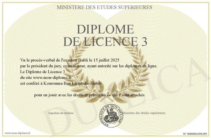 Envoyez par email votre Diplôme de Licence 3 personalisé