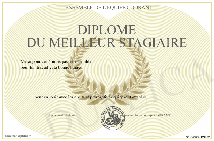 Envoyez par email votre Diplôme du Meilleur Stagiaire personalisé