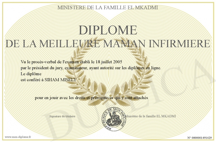 Envoyez par email votre Diplôme de la meilleure maman Infirmière personalisé
