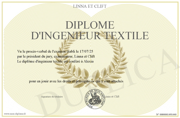 Envoyez par email votre Diplôme d'ingénieur téxtile personalisé