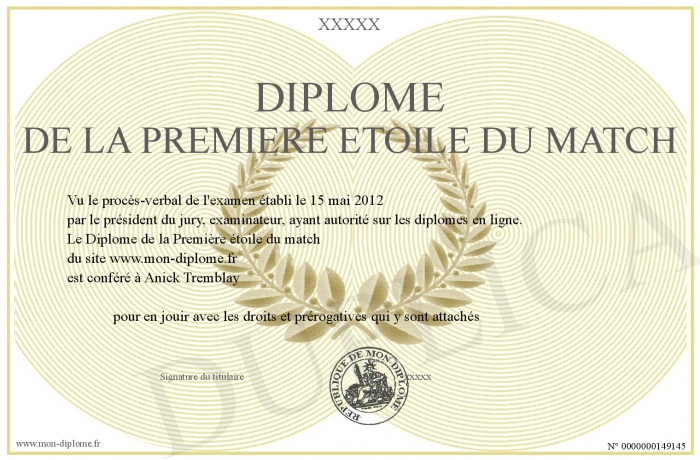 Envoyez par email votre Diplôme de la Première étoile du match personalisé