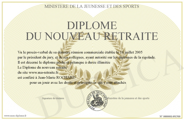 Envoyez par email votre Diplôme du nouveau retraité personalisé