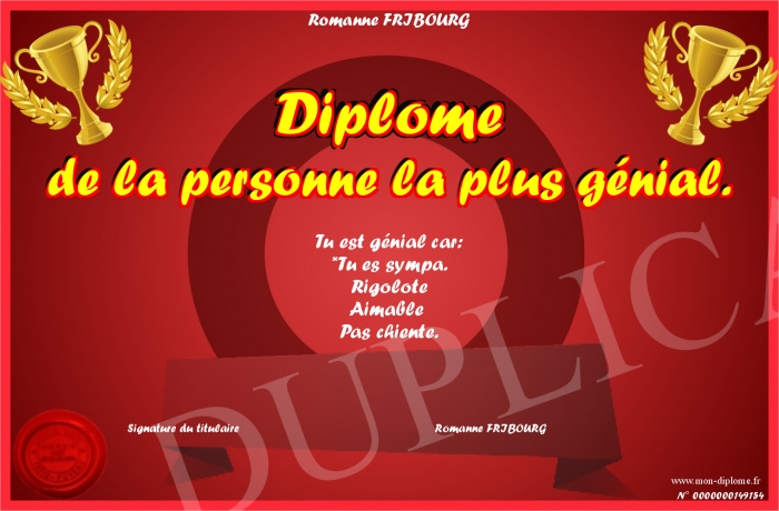 Envoyez par email votre Diplôme de la personne la plus génial. personalisé