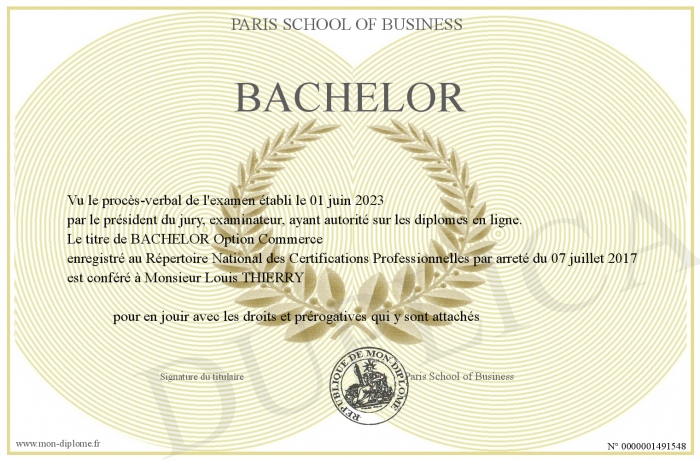 Envoyez par email votre BACHELOR personalisé