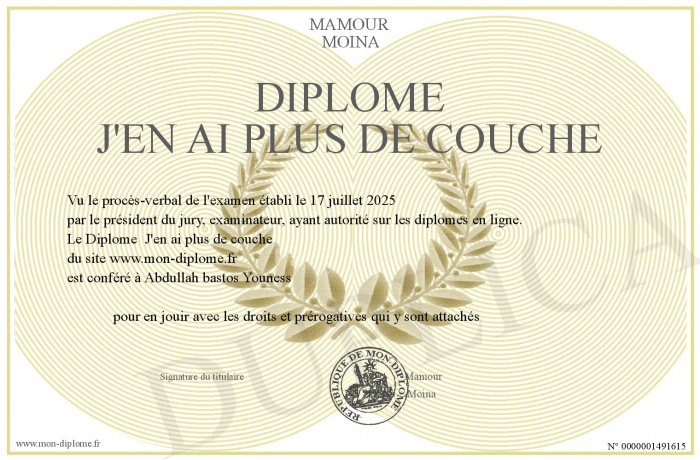 Envoyez par email votre Diplôme J'en ai plus de couche personalisé