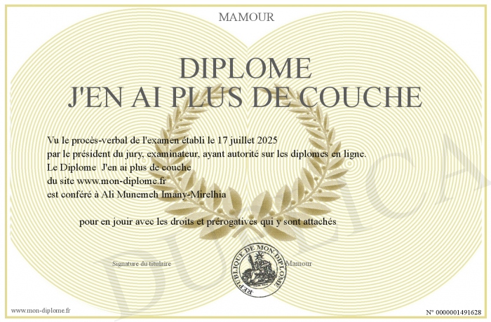 Envoyez par email votre Diplôme J'en ai plus de couche personalisé