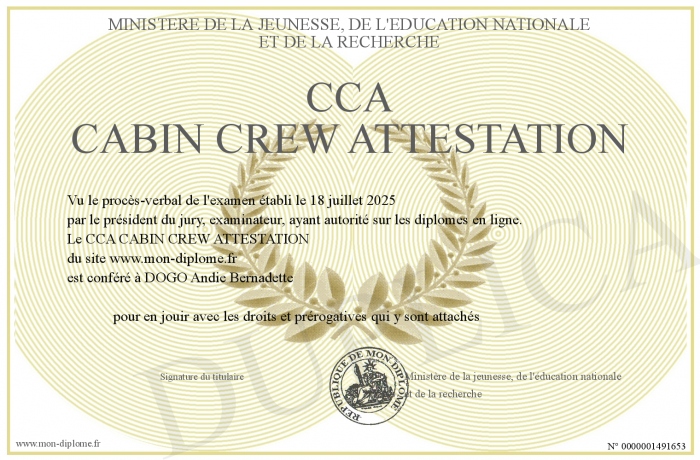 Envoyez par email votre CCA CABIN CREW ATTESTATION personalisé