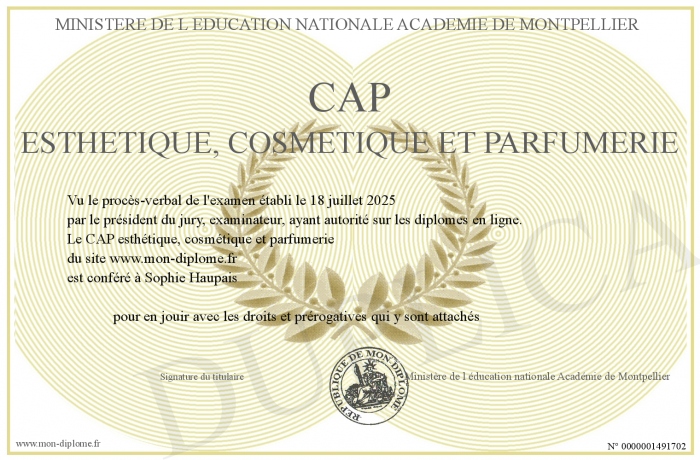 Envoyez par email votre CAP esthétique, cosmétique et parfumerie personalisé