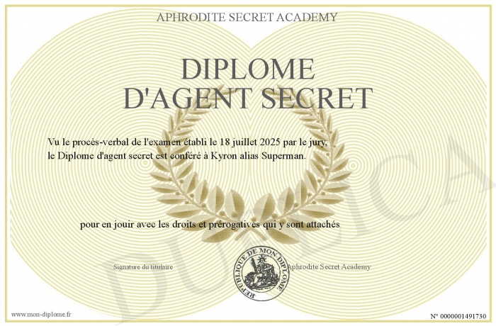 Envoyez par email votre Diplôme d'agent secret personalisé
