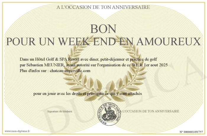 Envoyez par email votre BON POUR UN WEEK END EN AMOUREUX personalisé