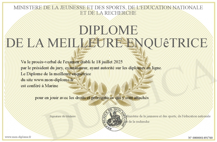 Envoyez par email votre Diplôme de la meilleure enquêtrice personalisé