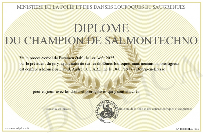 Envoyez par email votre Diplôme du Champion de SalmonTechno personalisé