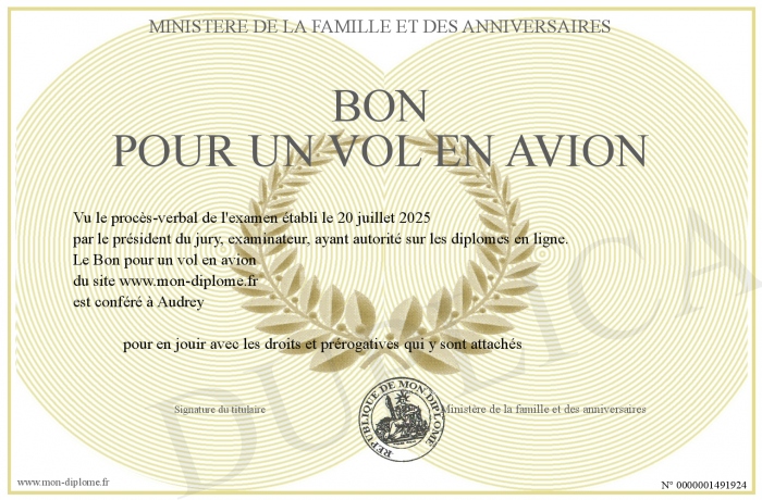 Envoyez par email votre Bon pour un vol en avion personalisé