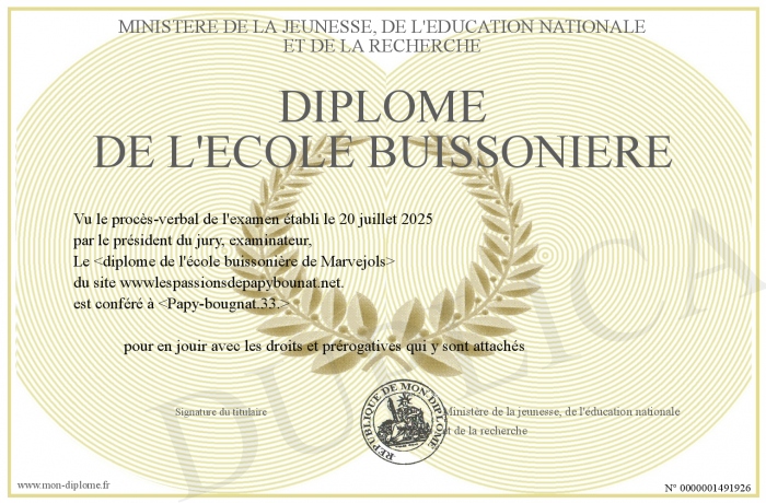Envoyez par email votre Diplôme de l'école buissonière personalisé