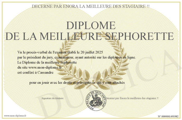 Envoyez par email votre Diplôme de la meilleure Sephorette personalisé
