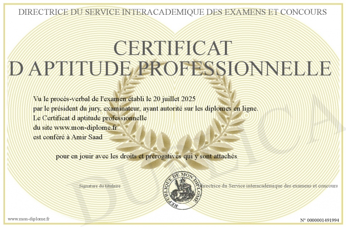 Envoyez par email votre Certificat d aptitude professionnelle personalisé