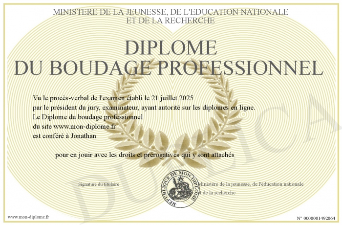 Envoyez par email votre Diplôme du boudage professionnel personalisé