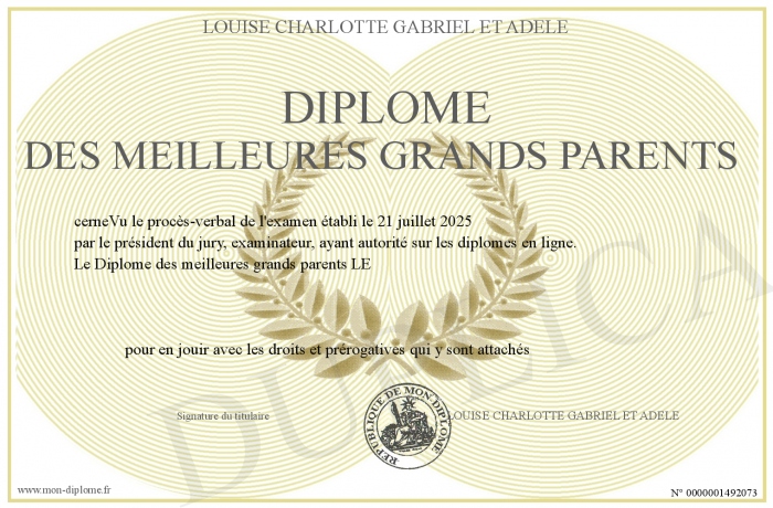 Envoyez par email votre Diplôme des meilleures grands parents personalisé