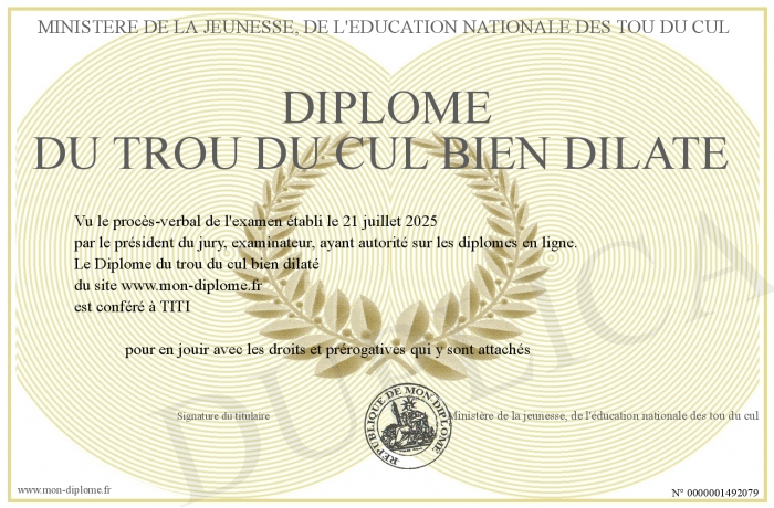 Envoyez par email votre Diplôme du trou du cul bien dilaté personalisé