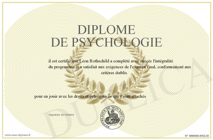 Envoyez par email votre Diplôme de Psychologie personalisé