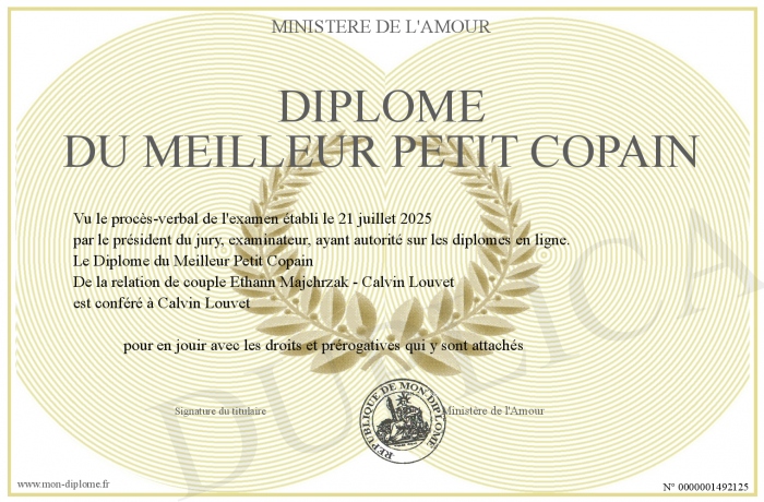 • Diplôme du Meilleur Petit Copain