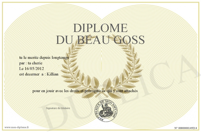 Envoyez par email votre Diplôme du beau goss personalisé