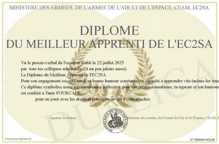 Envoyez par email votre Diplome du Meilleur Apprenti de l'EC2SA personalisé