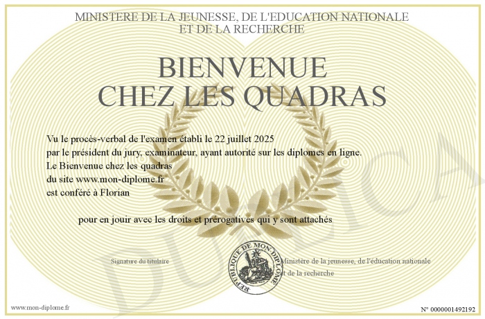 Envoyez par email votre Bienvenue chez les quadras personalisé